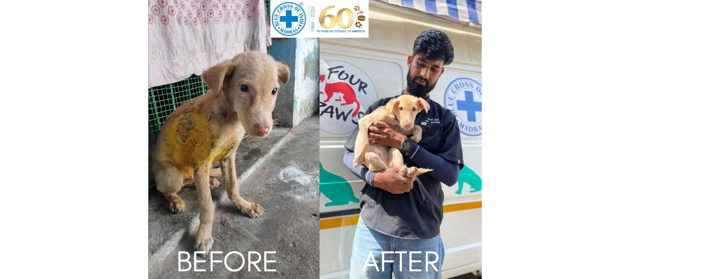 I was just going about my daily business on the streets of Pallikaranai with the innocent curiosity of a playful pup. But disaster struck as a speeding two-wheeler collided with me, dragging me along the harsh pavement and leaving my skin completely scalped.