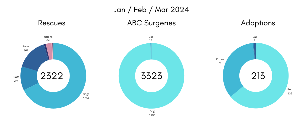 The rescues, birth control surgeries and re-homing by the Blue Cross Of India during the quarter (Oct-Nov-Dec 2023)