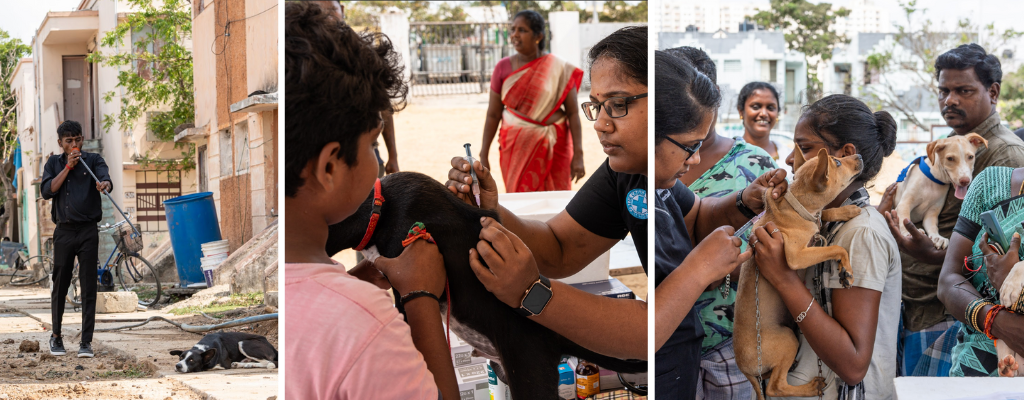 Mass vaccination camps were held in March in Kannagi Nagar (March 3rd) and Semmencherry (March 17th), and 840 dogs were vaccinated with DHPPI and ARV. These vaccination camps were also made possible through the generous sponsorship of the HCL Foundation.