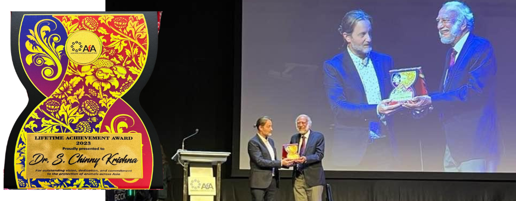 In a momentous recognition of his tireless efforts and profound impact on animal welfare, our founder, Dr. S Chinny Krishna, has been bestowed with the Asia for Animals Lifetime Achievement Award. This prestigious honor is a testament to his unparalleled commitment to fostering change through education and engagement.