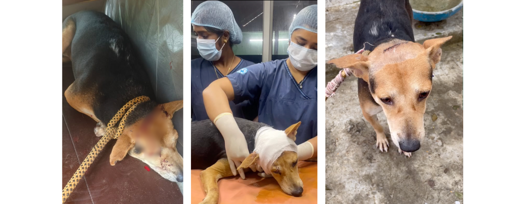 In Kotturpuram, I endured a terrifying ordeal when a human, acting out of fear for their own dog, left me with a deep cut and a cracked skull. A compassionate auto driver became my unexpected saviour. He noticed my pain and rushed me to the Blue Cross hospital, where more humans took immediate action. The manager reported the incident to the police and the skilled hands of the shelter’s veterinarians stitched up my wounds, while the community rallied with prayers for my recovery. In the tender care of the shelter’s team, my healing journey began, and today, as Mani the dog, I stand as a living testament to the resilience found in the embrace of compassion and second chances.