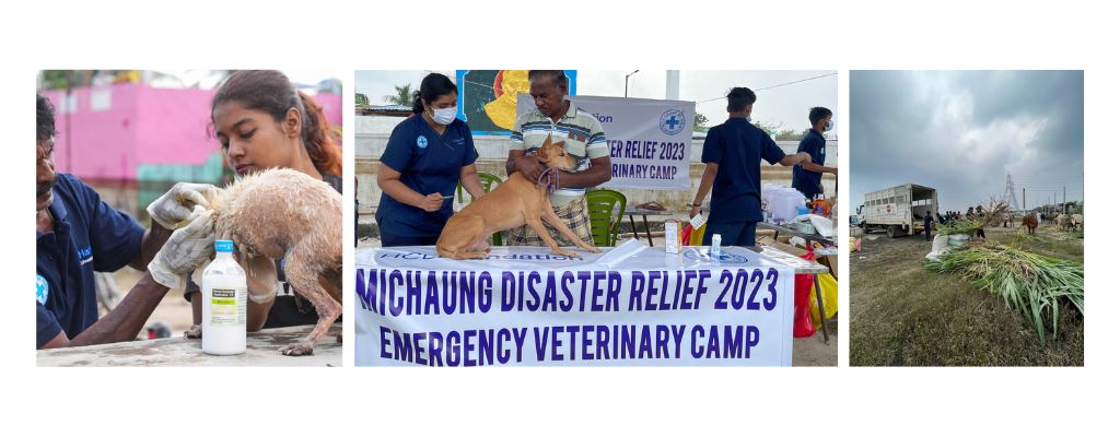 In the aftermath of Cyclone Michaung, we received a heartfelt plea for help from Mr. Karthick in Ernavur, where animals were adversely affected by an oil spill. Responding swiftly, our team, in collaboration with HCL Foundation, coordinated with local authorities. On December 13th, we conducted a comprehensive health camp. Our dedicated team, comprising veterinarians, veterinary assistants, animal handlers, volunteers, and operational staff, worked tirelessly to treat 70 animals, including dogs, cows, and cattle. For the 27 dogs affected by the oil spill, medicated baths were administered to alleviate their suffering.
