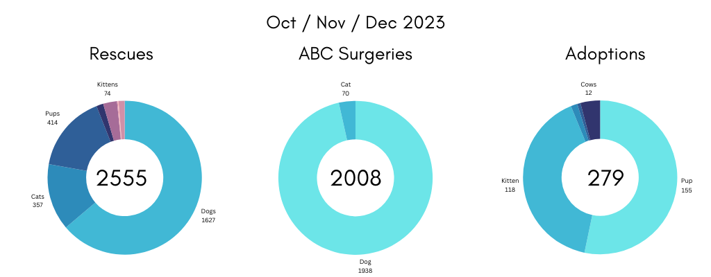 The rescues, birth control surgeries and re-homing by the Blue Cross Of India during the quarter (Oct-Nov-Dec 2023)